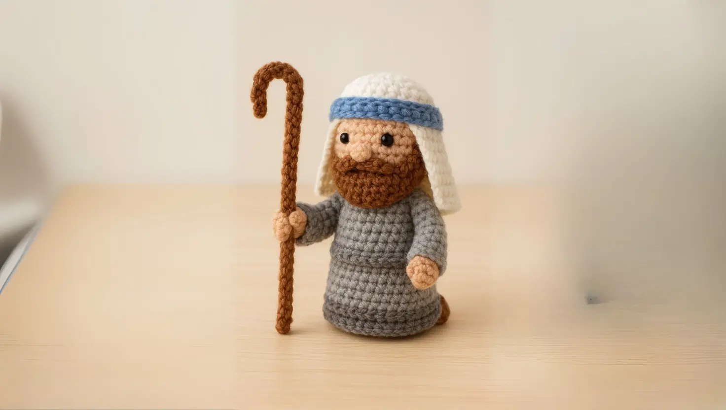 Você terá um José em amigurumi, com aproximadamente 14 cm, perfeito para compor o presépio natalino. Essa peça pode ser feita sozinha ou junto com outros personagens como Maria, o Menino Jesus, os pastores e os animais, formando um conjunto único e cheio de afeto.