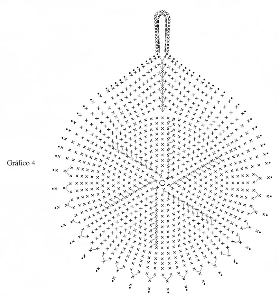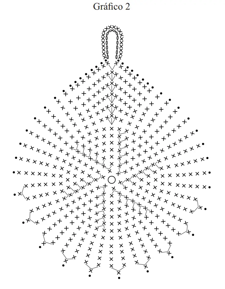 Esta é a peça mais pequena, trabalha-se em círculo começando com um anel mágico; com aumentos graduais obtém-se uma base arredondada.