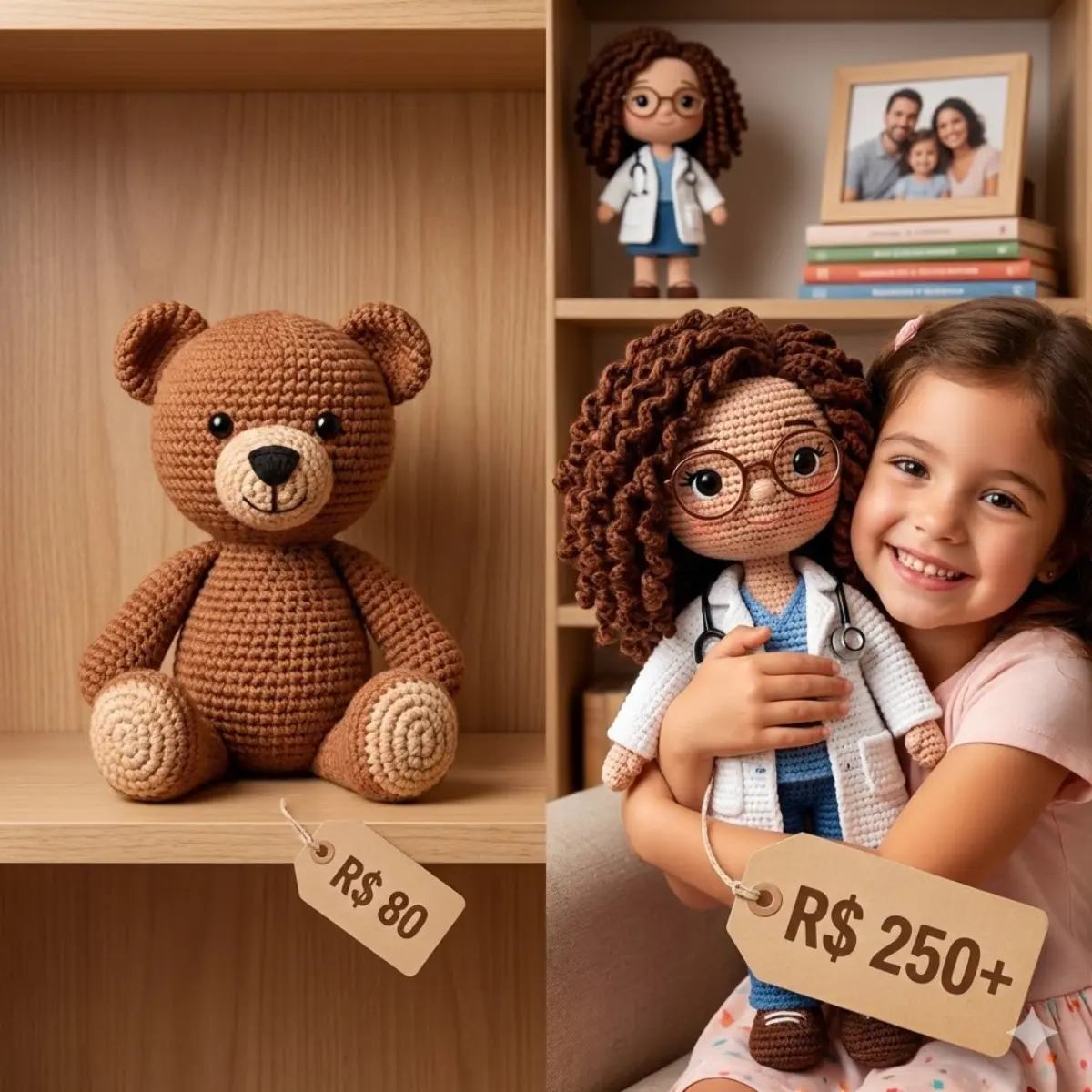 • Longevidade: Bonecas de amigurumi bem feitas não são brinquedos descartáveis; são heranças. São guardadas na estante depois que a criança cresce, tornando-se itens de decoração afetiva. O cliente sabe disso e aceita pagar o preço de algo que dura.
