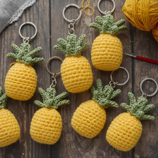 O charme do crochê está na possibilidade de personalização, e com o chaveiro de abacaxi isso não é diferente. Algumas ideias incluem: