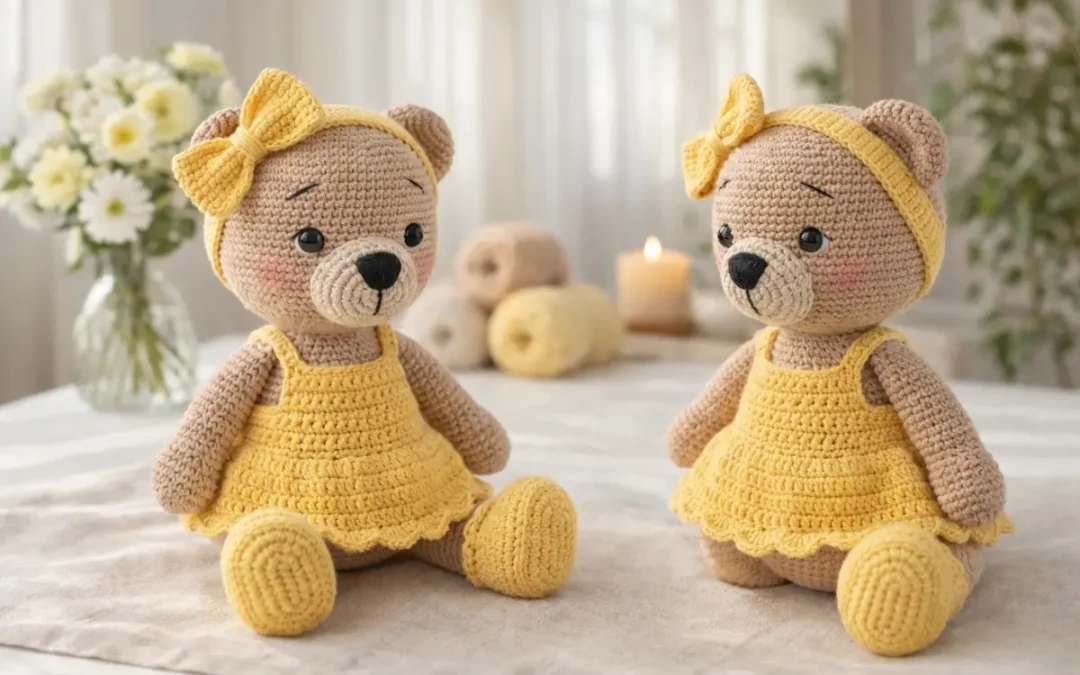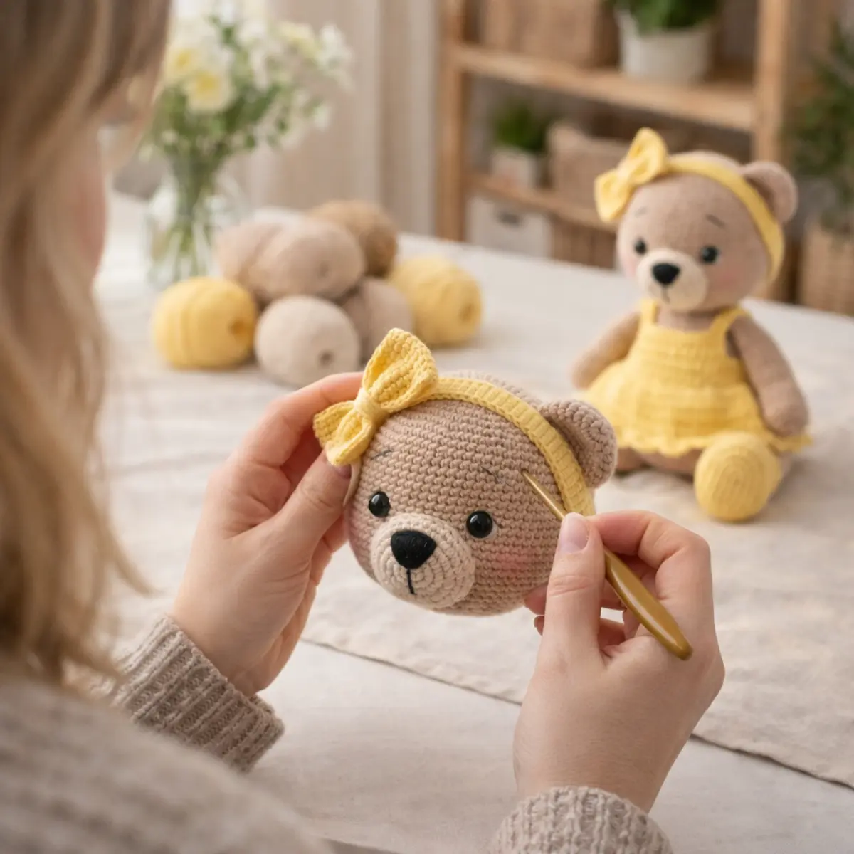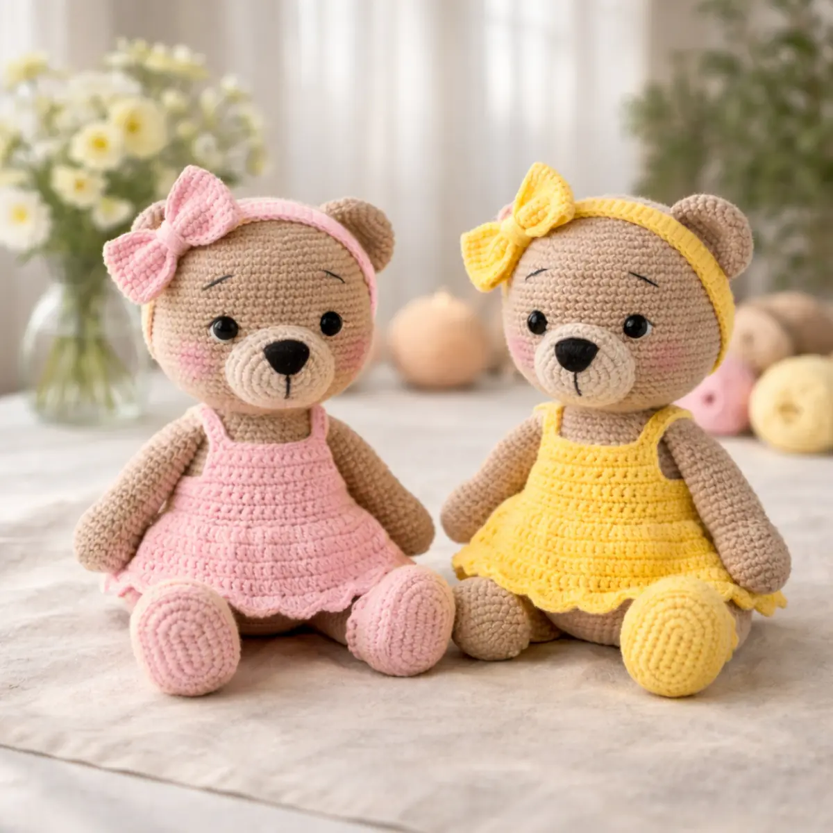 No panteão do amigurumi, poucas peças possuem a majestade e a perenidade do Urso Teddy. Ele é o “pretinho básico” do artesanato: nunca sai de moda, atravessa gerações e funciona para qualquer ocasião, do chá revelação ao presente de namoro. No entanto, para a artesã que deseja se destacar em um mercado saturado de ursinhos simples, o segredo do lucro não está apenas no boneco, mas no guarda-roupa. Criar uma Ursinha com vestido e sapatinhos — preferencialmente removíveis — eleva o produto da categoria de “enfeite estático” para “brinquedo interativo”. Essa funcionalidade adiciona uma camada de “brincabilidade” (play value) que encanta as crianças, que adoram a ação de vestir e despir, e fascina os adultos pela complexidade técnica e riqueza de detalhes. Ao oferecer uma peça vestível, você não está vendendo apenas um amigurumi; você está vendendo a possibilidade de personalização infinita, onde a cliente pode encomendar “roupinhas extras” no futuro, gerando uma fidelização automática e recorrente para o seu ateliê.