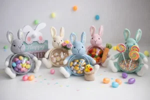 Personalização: Ofereça a Coelhinha Ariana em cores sazonais. Tons de azul bebê para meninos (Coelhinho Arian!), ou tons de amarelo para a Páscoa.