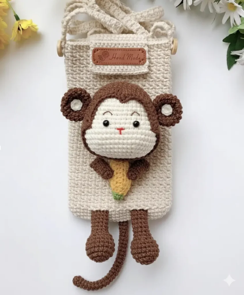 “Feita à mão com todo carinho, a Bolsa Macaquinho Amigurumi é perfeita para quem ama acessórios criativos e cheios de personalidade. Um toque artesanal que transforma qualquer look — e um presente encantador para todas as idades!”