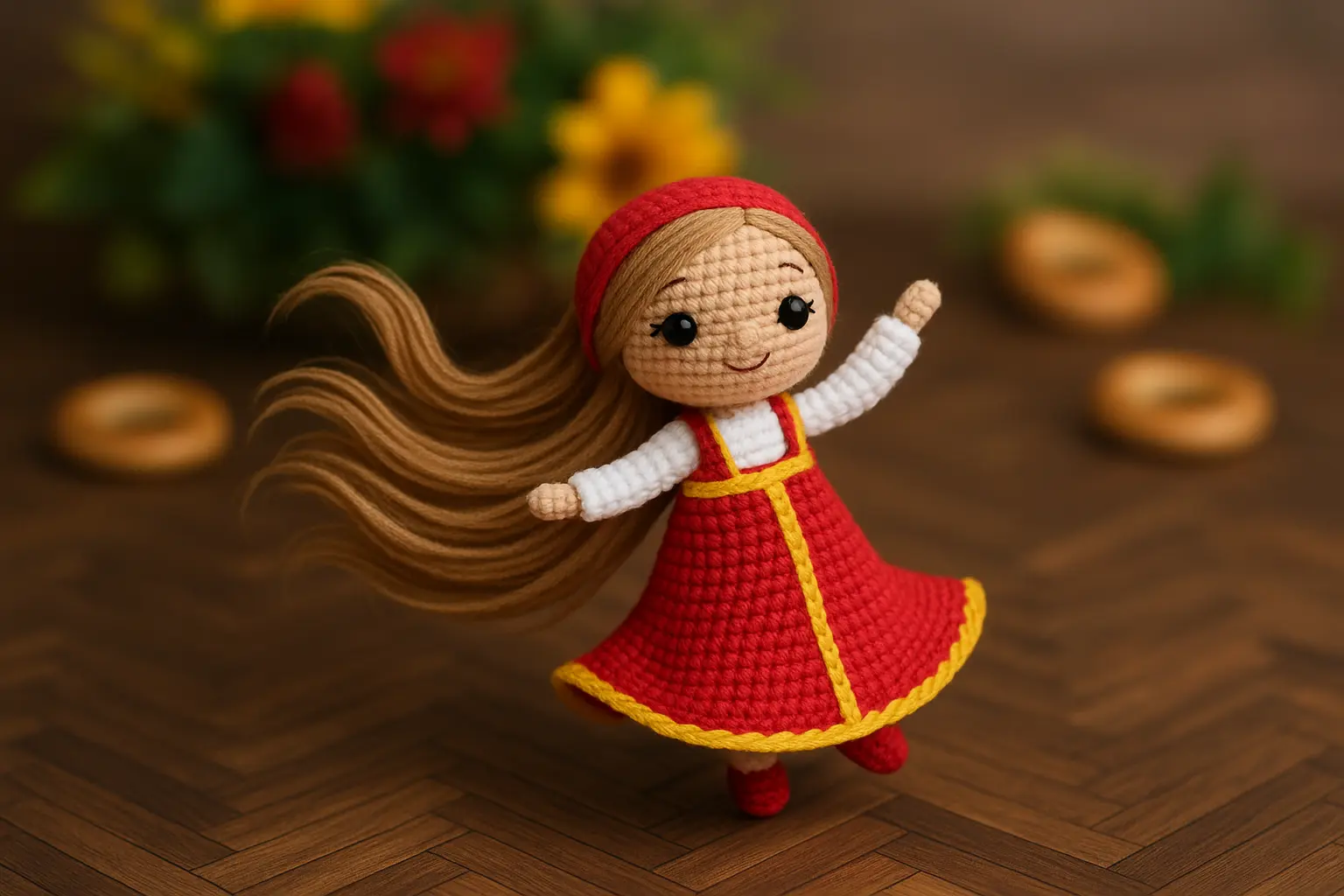 Agora que sabemos para quem estamos vendendo, vamos falar sobre como fazer essa peça. E “fazer”, no nosso ateliê de sucesso, significa imbutir valor percebido em cada detalhe, pois são esses detalhes que justificam um preço premium. O que transforma uma boneca comum em uma peça de decoração de luxo são os acessórios e as texturas. O vestido não pode ser “chapado”, com um simples ponto baixo. Use pontos diferentes! Faça a saia com um Ponto Puff discreto ou Ponto Alto em Relevo para criar uma textura de “tecido rústico” ou “linho”. O avental é obrigatório; ele é o charme da peça. Use um fio de cor crua, talvez com um pequeno bordado de flor, para dar aquele ar de “casa de vó”. Os acessórios são a sua mina de ouro, pois é aqui que você multiplica seu preço. A Camponesa precisa de itens que contem sua história: um chapéu de abas, talvez feito com um fio de juta ou rami para dar a textura de palha, e, o mais importante, uma cestinha. E, por favor, minha amiga, não entregue essa cestinha vazia! O que você coloca dentro da cesta é o que transforma a “boneca” em “cena”, é o que cria o storytelling. Sua boneca é a “Colhedora de Lavandas”? Encha a cesta com mini lavandas de crochê. Ela é a “Pequena Padeira”? Coloque mini baguettes de crochê. Ela é a “Jardineira”? Coloque um mini girassol. No momento em que você faz isso, ela deixa de ser uma “Boneca Camponesa genérica” e se torna a “Rosalina, a Guardiã das Lavandas”. Ela ganha nome, propósito e uma história. E as pessoas não compram produtos; elas compram histórias.