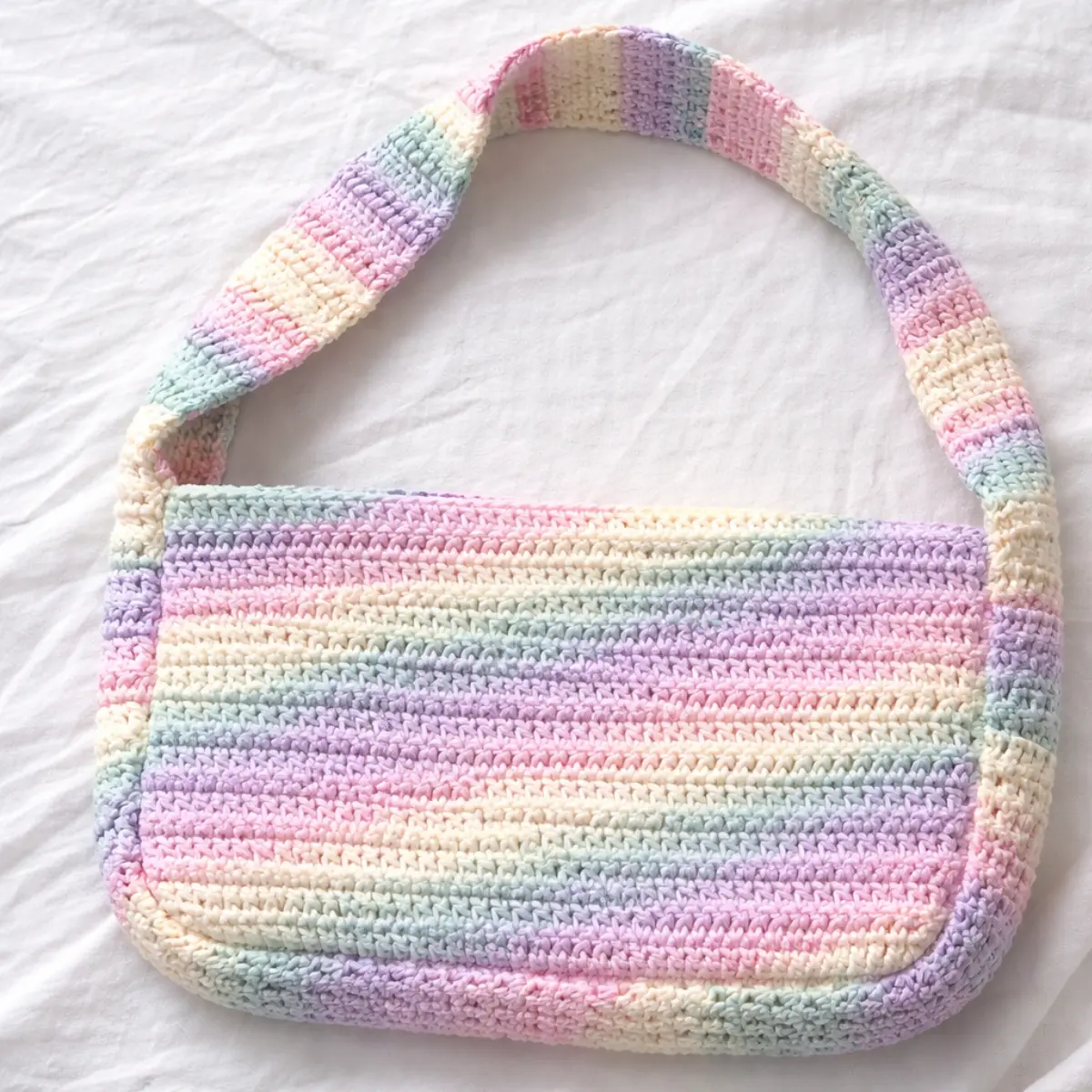 Você tece um retângulo longo (com a largura que você quer que a bolsa tenha).