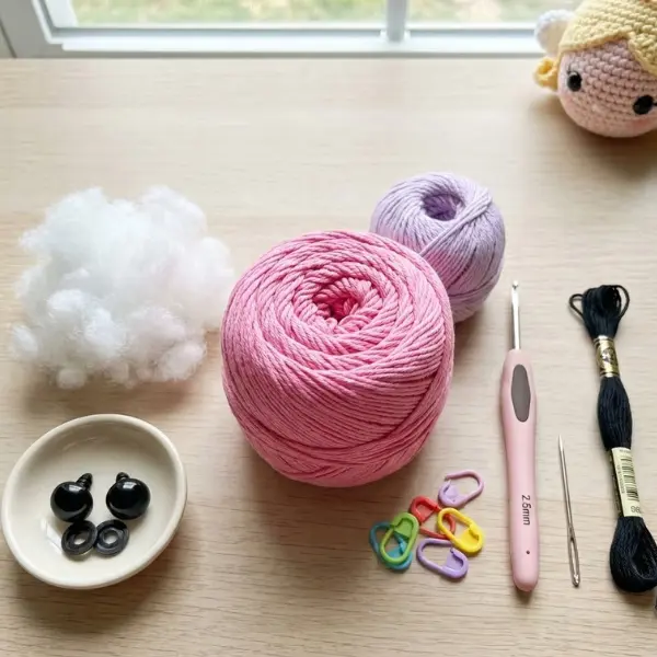 Agulha de Crochê: Compatível com o fio escolhido (geralmente entre 2.0mm a 3.0mm para fios tipo Amigurumi tradicional) para garantir pontos bem fechadinhos.