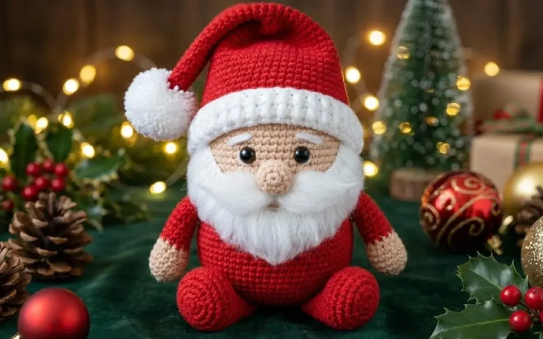 As Cores: Use o vermelho “Paixão” ou “Carmim” para a roupa. Para a barba, o fio “Branco” tradicional é ótimo, mas se quiser inovar, use um fio com textura (como o Amigurumi Pelúcia) apenas na barba para dar volume e fofura.