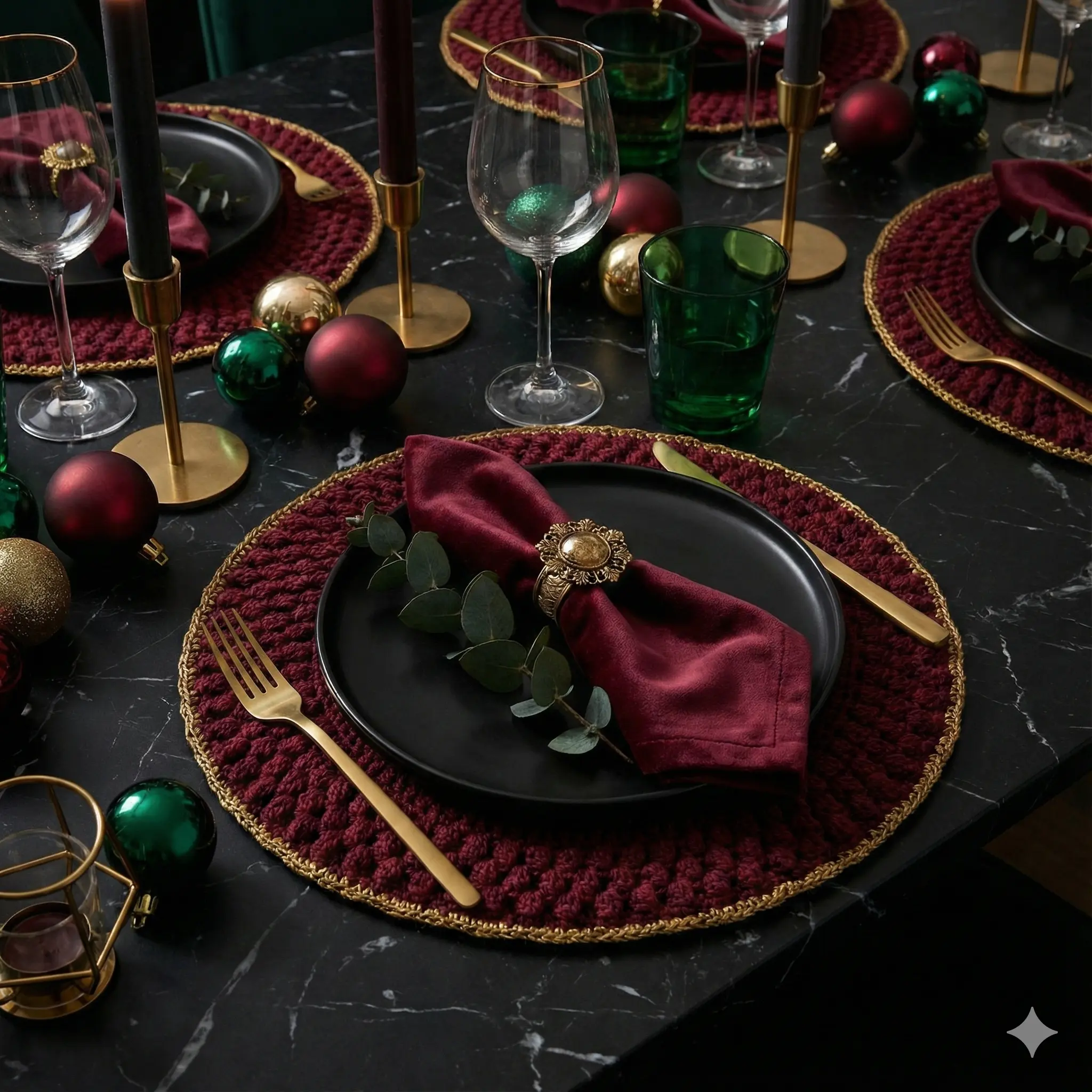 O Modelo Ideal: Modelos com texturas relevo, como o Ponto Pipoca ou Ponto Alto em Relevo, funcionam muito bem porque criam sombras que destacam a profundidade dessas cores escuras. Sousplats com formato de flor ou estrela (com pontas) nessas cores ficam divinos.