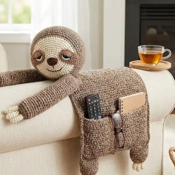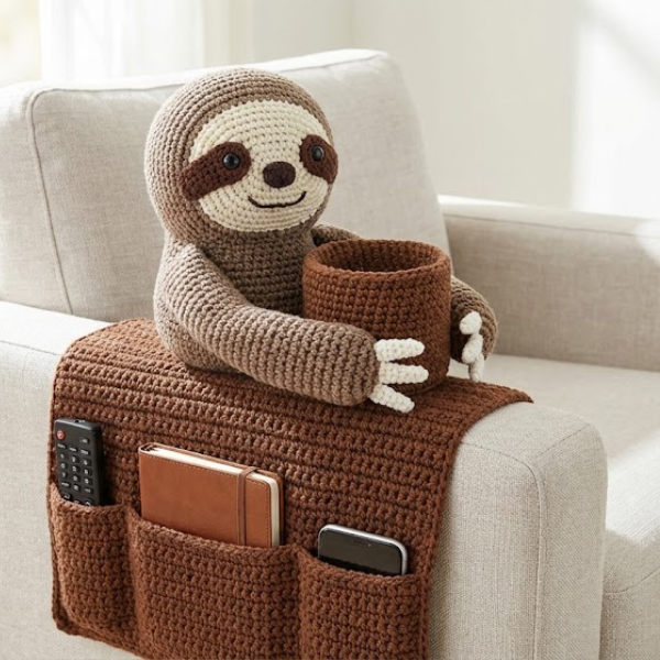Aqui tem uma receita de um lindo organizador Bicho Preguiça Amigurumi!