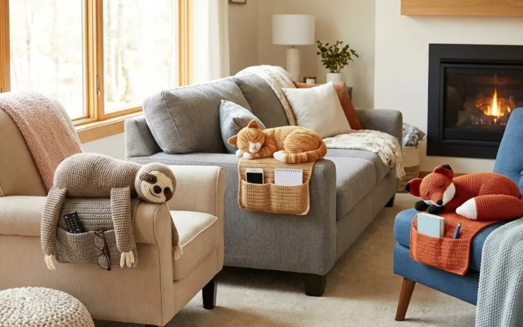 Hoje vou te apresentar uma tendência que está bombando no Pinterest gringo e que você pode ser pioneira aqui no Brasil: Os Organizadores de Sofá de Animais (Amigurumi Armrest Organizers).