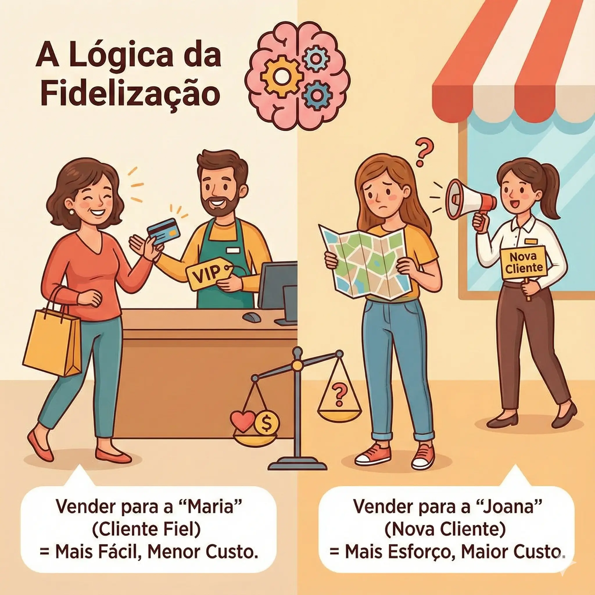 🧠 A Lógica da Fidelização: Por Que Vender para a “Maria” é Melhor que Vender para a “Joana”?