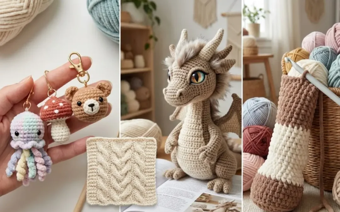 A tendência dos “Mini Amigurumis” está ganhando força total, impulsionada pelo uso de fios específicos como o chenille fino (skinny chenille) e fios de veludo.